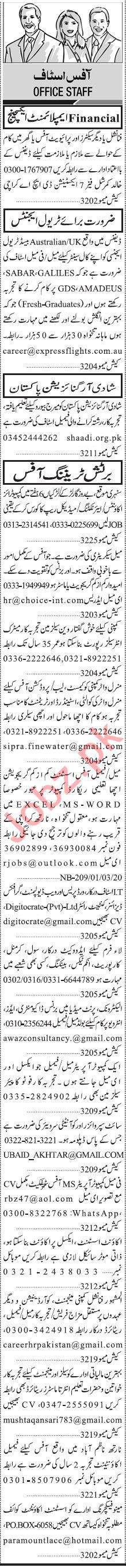 Jang Sunday Classified Ads 1st March 2020 for Admin Staff