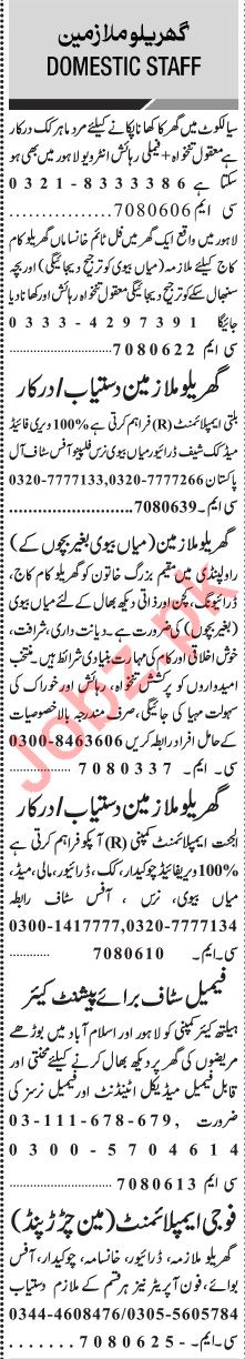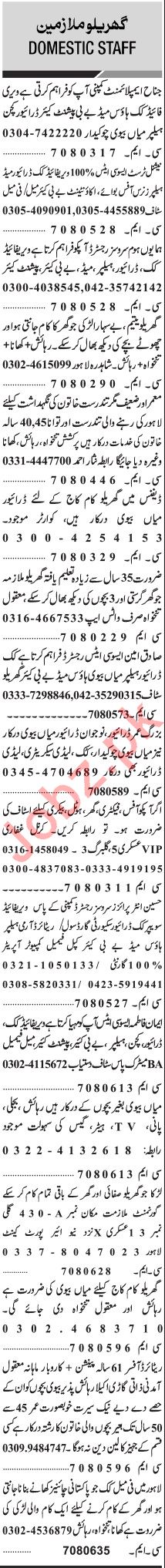 Jang Sunday Classified Ads 1st March 2020 For House Staff