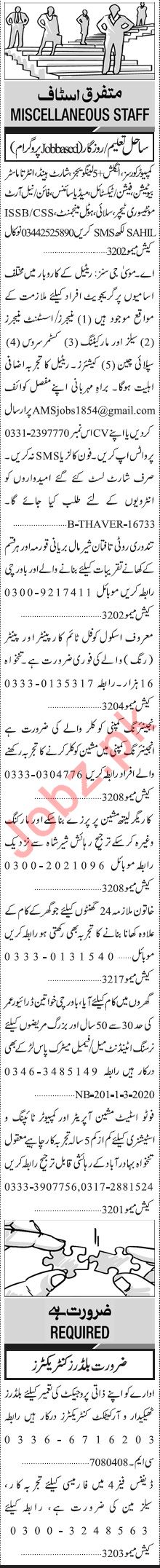 Jang Sunday Classified Ads 1st March 2020 for Multiple Staff