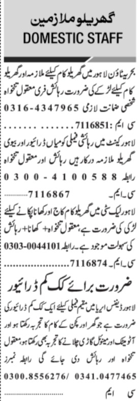 Jang Sunday Classified Ads 1st May 2022 For House Staff