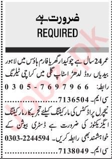 Vacant posts including marketing executive, chowkidar and watchman are announced in Private Company Lahore, lahore Punjab Pakistan as per 2 October 2023 advertisement in daily Jang Newspaper. Persons with Bachelor, Middle and Intermediate etc. education can apply.