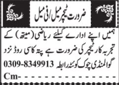 Vacant posts including female teacher, teacher and mathematics teacher are announced in Private School Quetta, quetta Balochistan Pakistan as per 2 September 2024 advertisement in daily Jang Newspaper. Candidates with M.sc etc. educational background will be preferred.