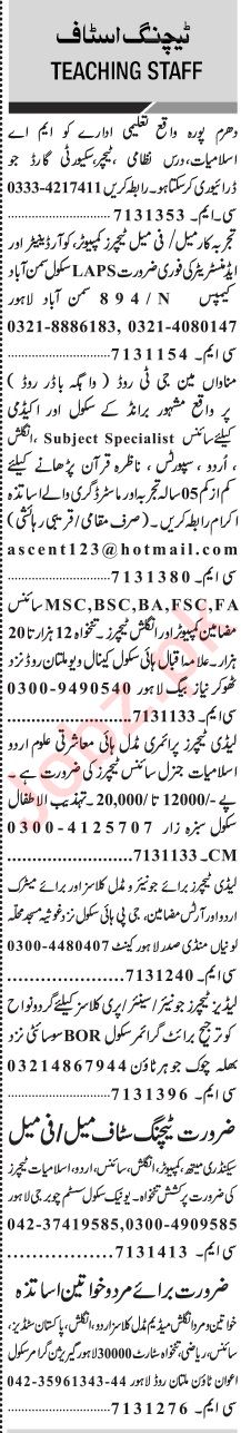 Latest Private School Teaching Posts Lahore 2025