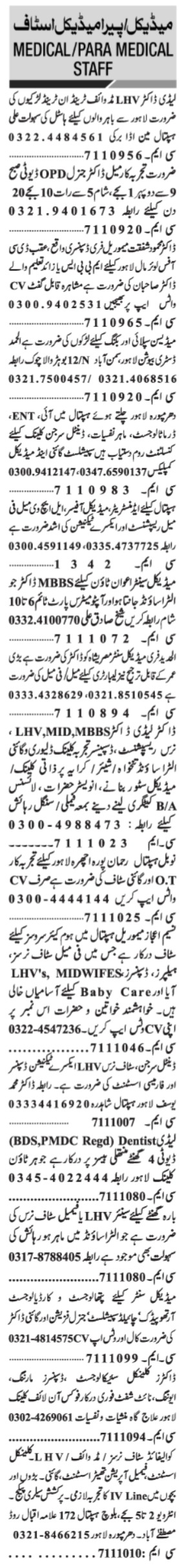 Jang Sunday Classified Ads 2 Jan 2022 For Medical Staff