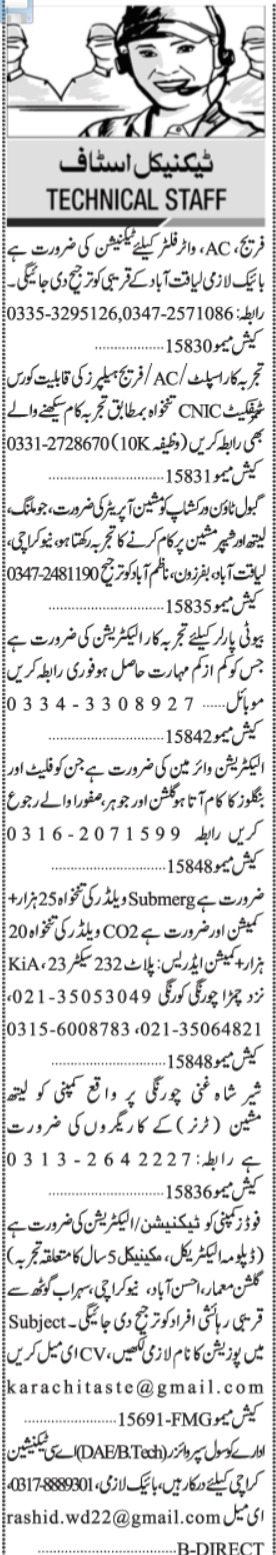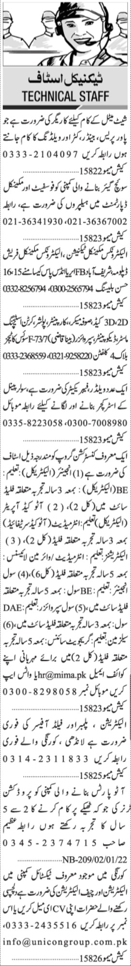 Jang Sunday Classified Ads 2 Jan 2022 For Technical Staff