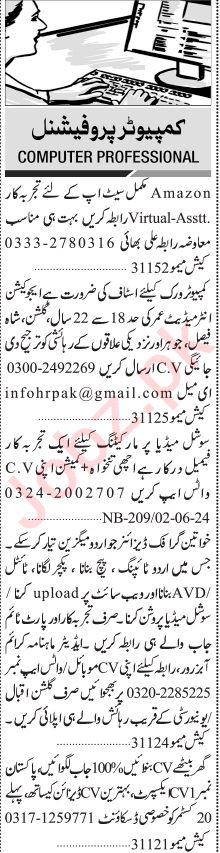 Jang Sunday Classified Ads 2 June 2024 for Computer Staff