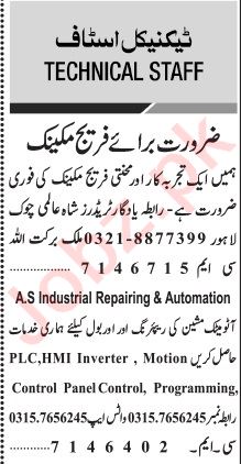 Factory jobs advertisement dated about 2 June 2024 in daily Jang Newspaper invites application for the vacant post of electrician and fridge mechanic in Lahore, lahore Punjab Pakistan. Intermediate and Matric etc. educational qualification will be preferred.