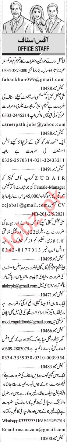 Jang Sunday Classified Ads 2 May 2021 For Office Staff