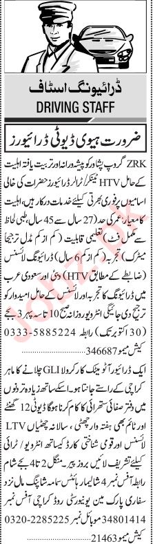 Jang Sunday Classified Ads 2 October 2022 for Drivers