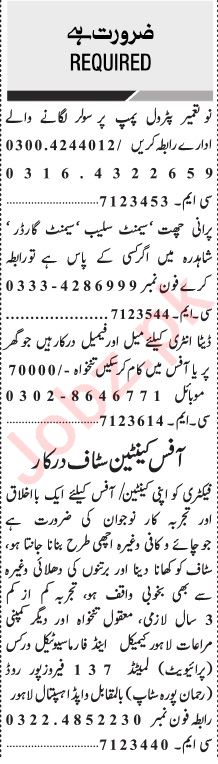 Private Company jobs advertisement dated about 3 October 2022 in daily Jang Newspaper invites application for the vacant post of office staff, data entry operator and female office staff in Lahore, lahore Punjab Pakistan. Preferred Education is Middle, Intermediate, Bachelor and Matric etc.