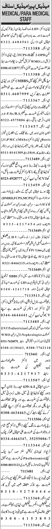 Jang Sunday Classified Ads 20 Feb 2022 For Medical Staff