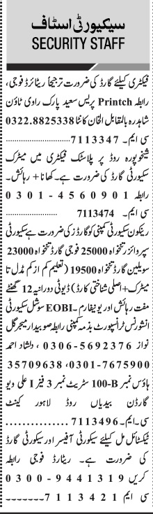 Jang Sunday Classified Ads 20 Feb 2022 For Security Staff