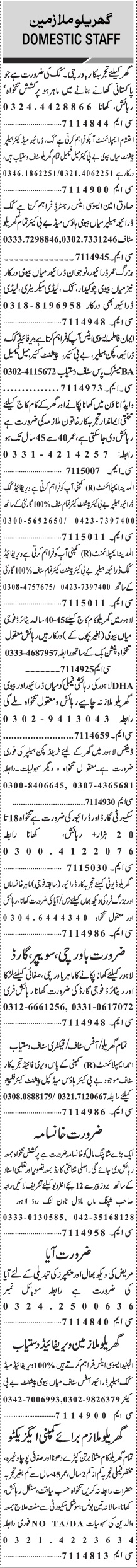 Jang Sunday Classified Ads 20 March 2022 For Domestic Staff