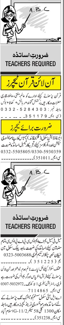 Jang Sunday Classified Ads 20 March 2022 For School Staff