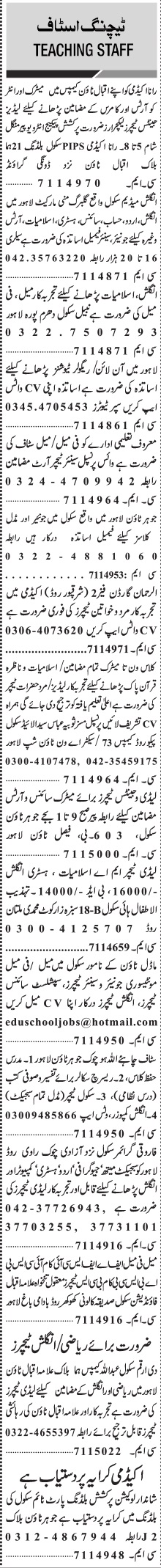 Jang Sunday Classified Ads 20 March 2022 for Teaching Staff