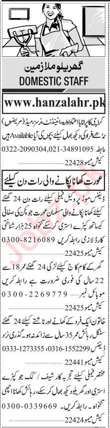 Jang Sunday Classified Ads 20 Nov 2022 For House Staff