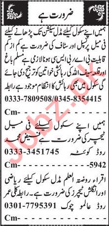 Coordinator, Teacher, Quran Teacher, English Teacher, Chemistry Teacher, Physics Teacher, Biology Teacher, Maths Teacher, Urdu Teacher, Art Teacher, ESL Teacher, High School Teacher, History Teacher, Kindergarten Teacher, Middle School Teacher seeks in well developed schools.