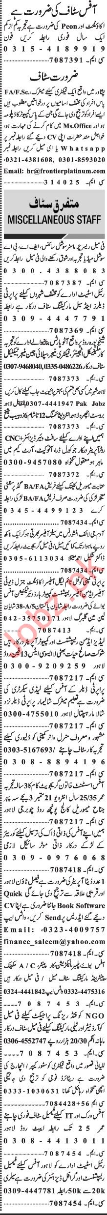 Jang Sunday Classified Ads 20 Sept 2020 for Multiple Staff