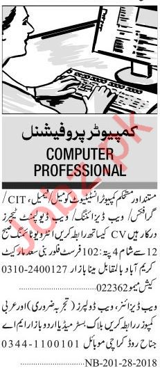 Jang Sunday Classified Ads 2018 for Computer Staff