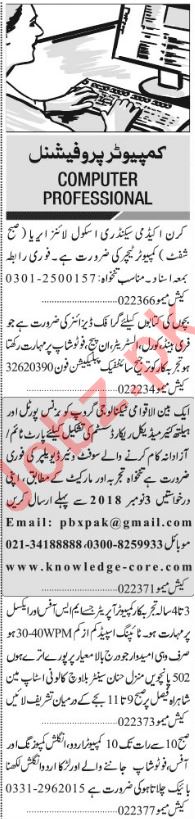 Jang Sunday Classified Ads 2018 For Computer Staff