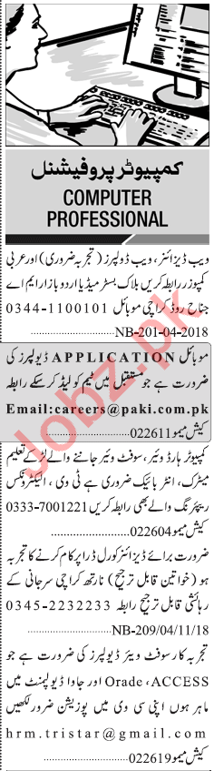 Jang Sunday Classified Ads 2018 For Computer Staff