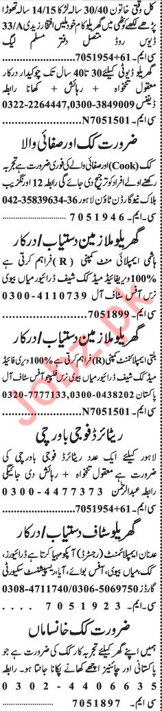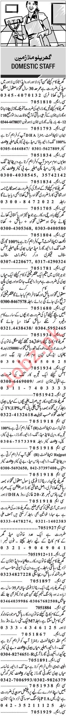 Jang Sunday Classified Ads 2018 for Domestic Staff
