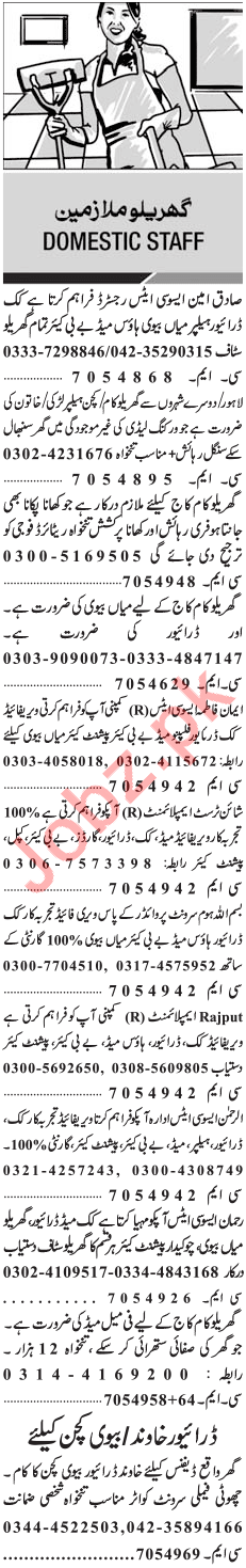 Jang Sunday Classified Ads 2018 for Domestic Staff