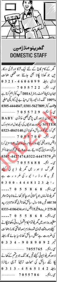 Jang Sunday Classified Ads 2018 for Domestic Staff