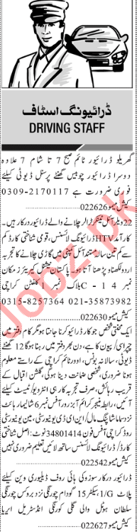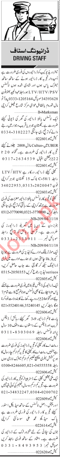 Jang Sunday Classified Ads 2018 For Driving Staff