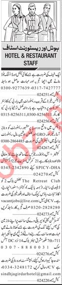 Jang Sunday Classified Ads 2018 For Hotel & Restaurant Staff