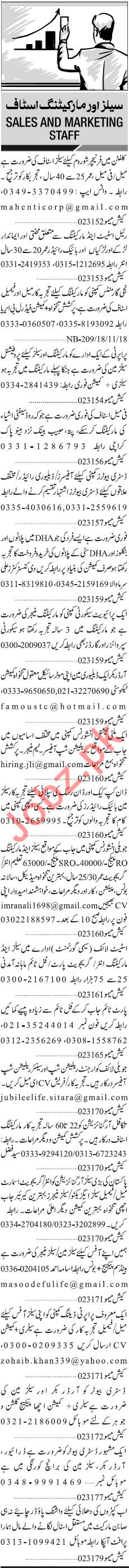 Jang Sunday Classified Ads 2018 for Sales & Marketing Staff