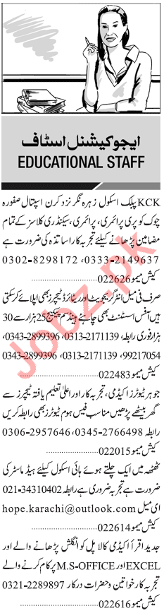 Jang Sunday Classified Ads 2018 for Teaching Staff