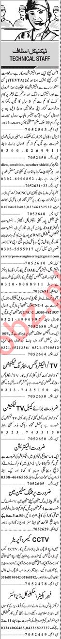 Jang Sunday Classified Ads 2018 For Technical Staff