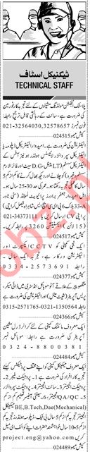 Jang Sunday Classified Ads 2018 For Technical Staff