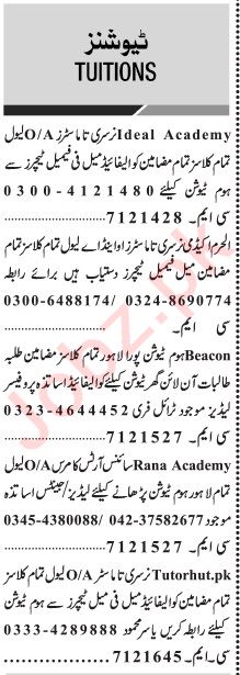 Jang Sunday Classified Ads 21 Aug 2022 For Home Tutor