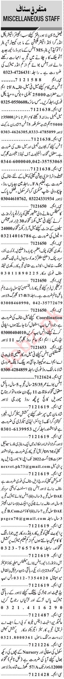 Jang Sunday Classified Ads 21 Aug 2022 For Management Staff