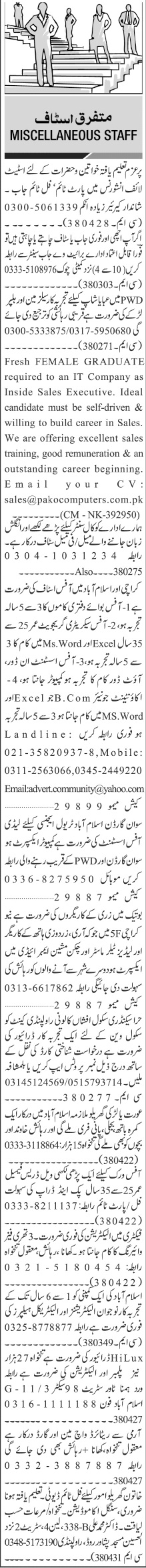 Jang Sunday Classified Ads 21 Jan 2024 for General Staff