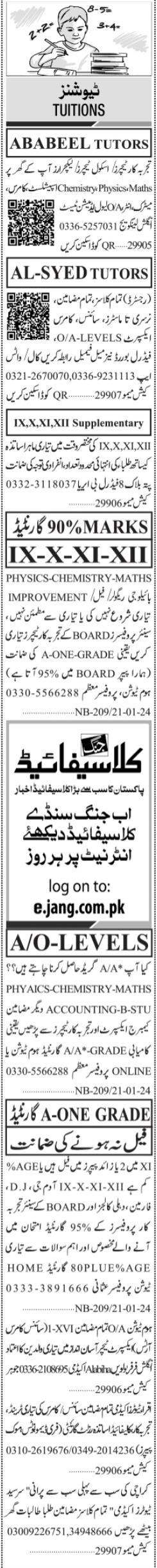 Jang Sunday Classified Ads 21 Jan 2024 for Office Staff