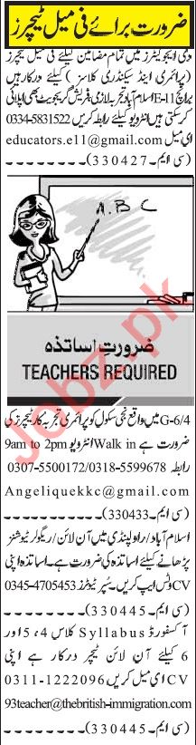Jang Sunday Classified Ads 21 March 2021 For School Staff