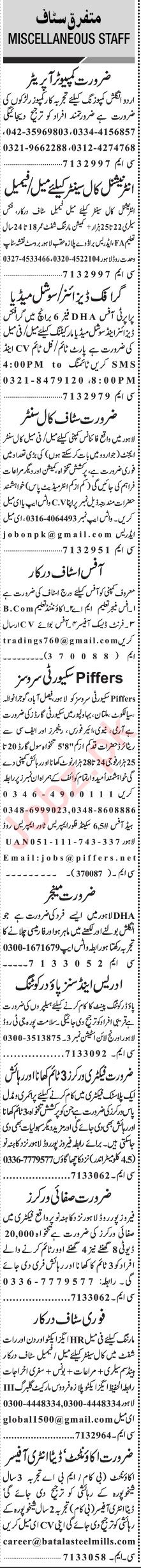 Vacant posts including office boy, security guard, office manager, accountant, front desk officer, hr executive, factory worker, graphic designer, data entry officer, marketing officer, call center staff, computer operator, manager, social media expert, helper, factory sweeper, call center agent and accounts officer are announced in Private Company Lahore, multan, faisalabad, bahawalpur, sialkot, gujranwala and lahore Punjab Pakistan as per 22 May 2023 advertisement in daily Jang Newspaper. Candidates with BBA, Bachelor, Intermediate, BA, Middle, Matric, DAE, MS, B.E, I.com and B.com etc. educational background will be preferred.