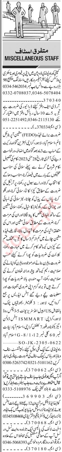 Jang Sunday Classified Ads 21 May 2023 for HR Staff