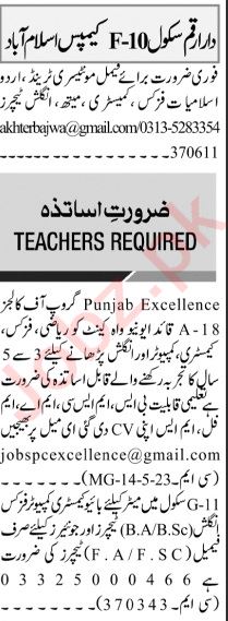Private School is looking for candidates for following posts as per job advertisement published in daily Jang Newspaper of May 22, 2023 for location Islamabad, rawalpindi Islamabad Pakistan: