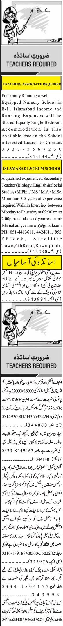 Jang Sunday Classified Ads 21 Nov 2021 for School Staff
