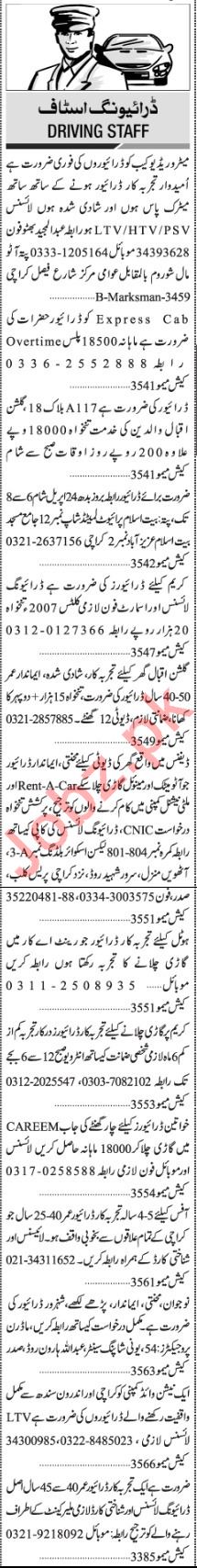 Jang Sunday Classified Ads 21st April 2019 Driving Staff