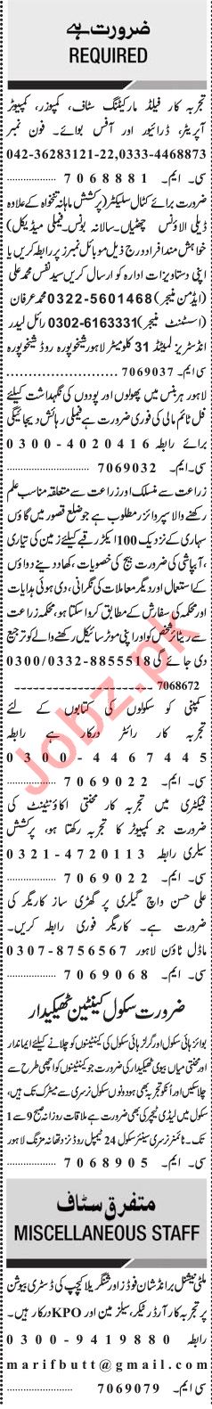 Jang Sunday Classified Ads 21st July 2019 for Multiple Staff
