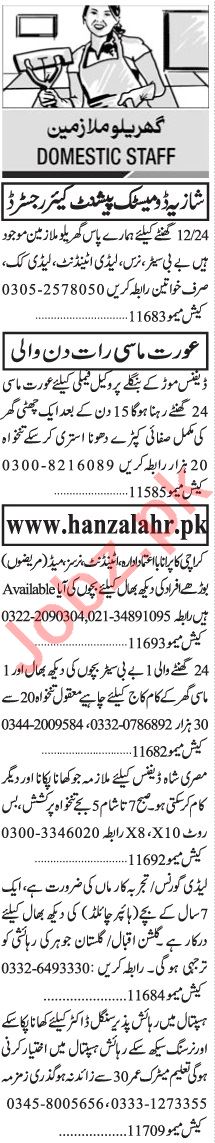 Jang Sunday Classified Ads 22 August 2021 For House Staff