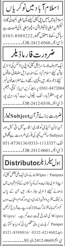 Jang Sunday Classified Ads 22 Dec 2024 For General Staff