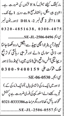 Jang Sunday Classified Ads 22 June 2025 For Admin Staff