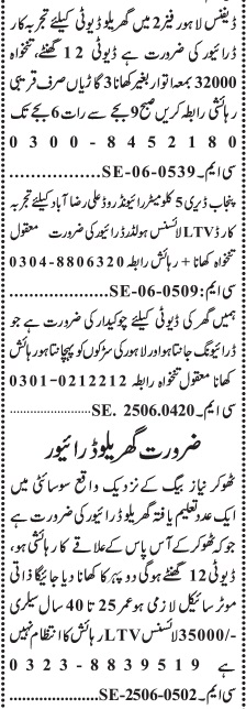 Jang Sunday Classified Ads 22 June 2025 for Drivers