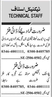 Jang Sunday Classified Ads 22 June 2025 For Factory Staff
